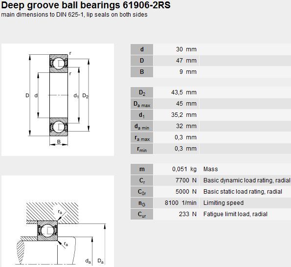 | Manufacturer | SKF | Diameter (mm) | 47 |